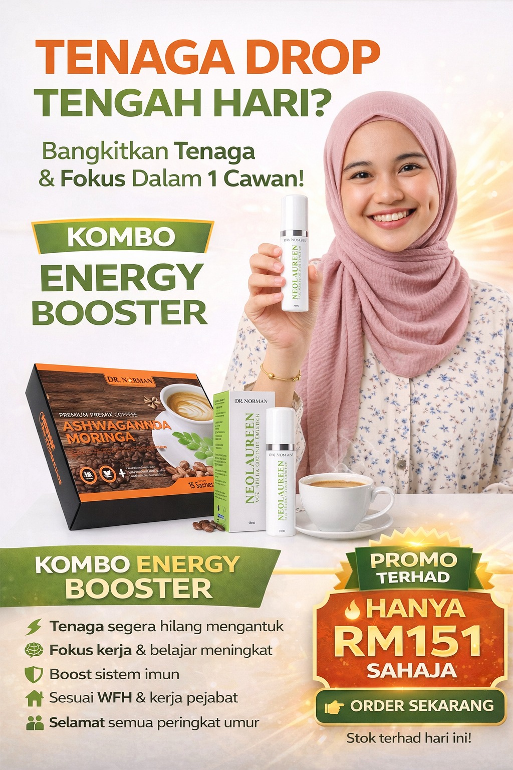 Gabungan khas untuk bantu tingkatkan tenaga dengan cepat, kurangkan rasa mengantuk dan improve fokus kerja atau belajar. Sesuai untuk gaya hidup sibuk, WFH atau kerja pejabat.