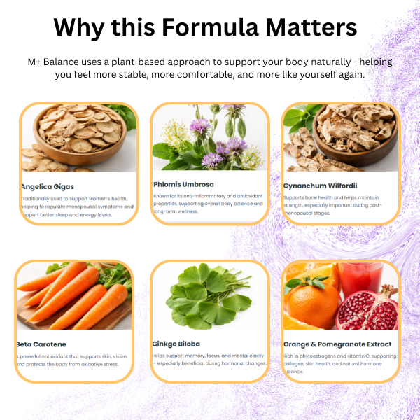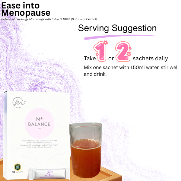 M+ BALANCE merupakan Campuran Minuman Botani Oren dengan Estro G-100 (Botanical Extracts). Menggunakan sumber dari herba dan bahan semula jadi yang membantu menyokong keseimbangan hormon wanita terutama yang berumur 40 tahun ke atas.